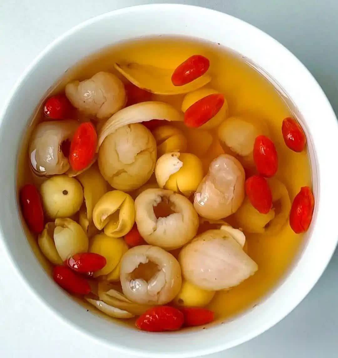 食材:桂圆20颗、莲子30克、冰糖适量。